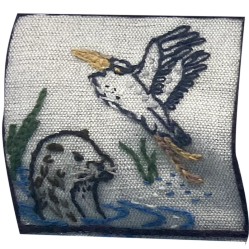 Andrew Crummy, the Tapestry’s artist, designed the ‘Welcome’ panel to reflect the region’s local history and its nationally significant stories. He depicted the Scottish Borders landscape, showcasing its rolling hills and river networks through the clothing of the central figures. These figures represent key historical roles in the region’s history: a farmer, millworker, monk, Border Reiver, and fisherwoman. The River Tweed and its tributaries flow across the figures, connecting them to the eastern sea.